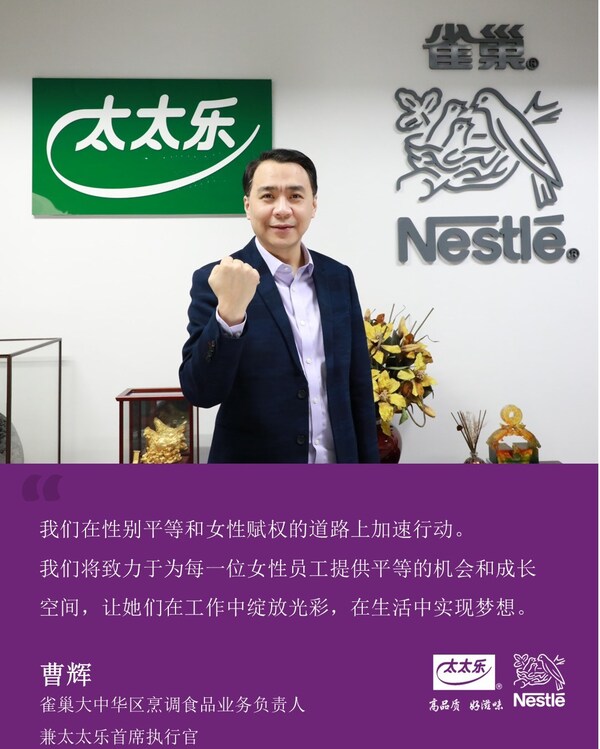 雀巢大中华区烹调食品业务负责人兼太太乐首席执行官曹辉表示:"我们在性别平等和女性赋权的道路上加速行动。我们将致力于为每一位女性员工提供平等的机会和成长空间,让她们在工作中绽放光彩,在生活中实现梦想。"