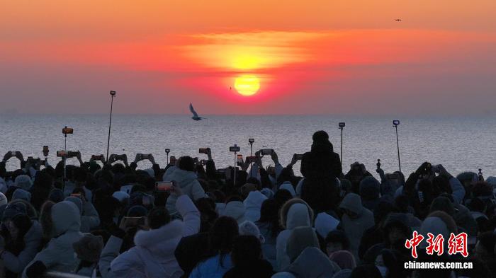 元旦清晨,天津东疆成为迎接新年第一缕阳光的热门地点。在标志性日出观赏地,早在破晓前就已汇聚起大量游客与市民。人们不畏严寒,翘首以待,用镜头与欢呼记录红日跃出海面、照亮大海的浪漫瞬间,以充满仪式感的方式开启新年。