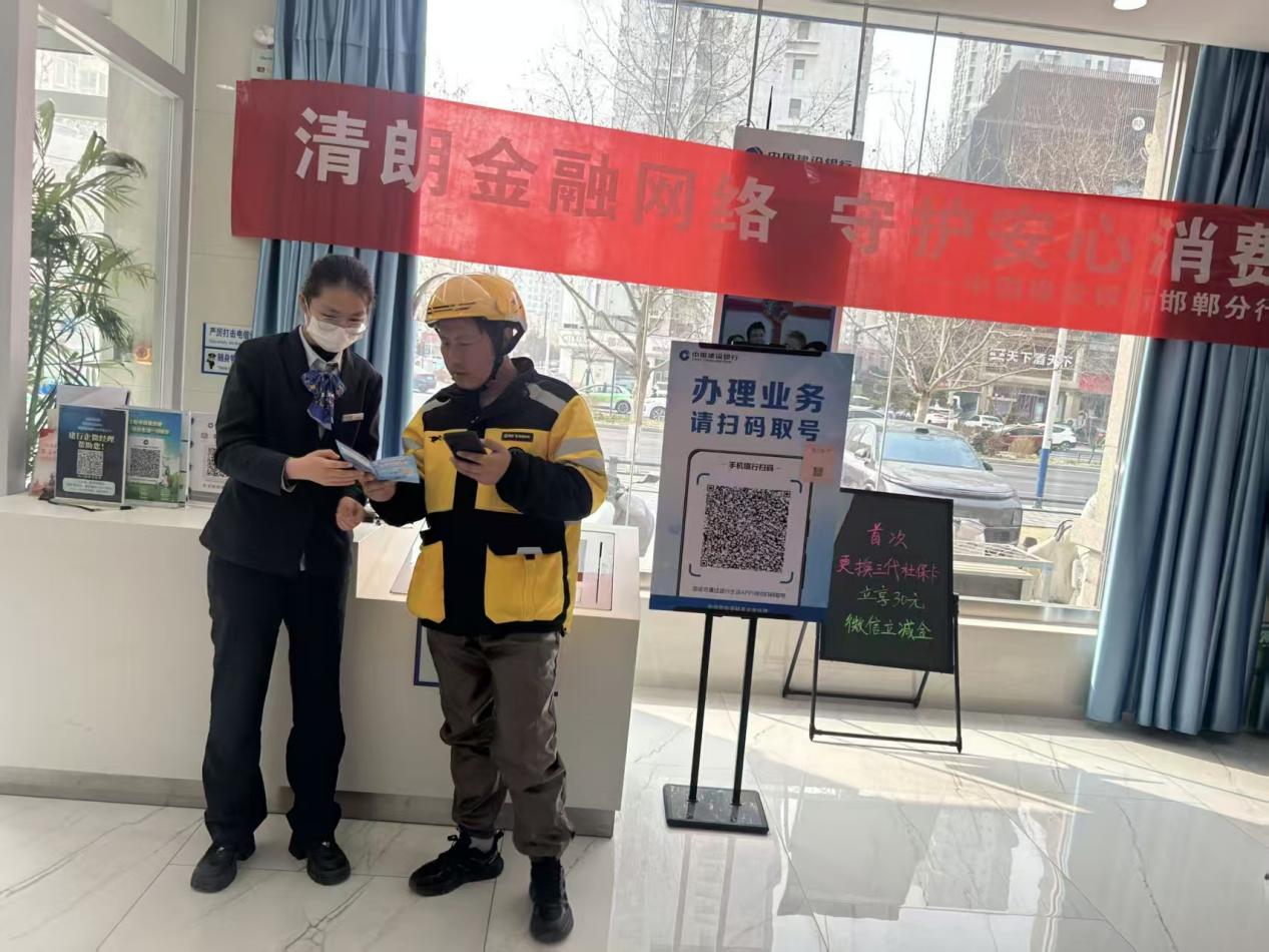 为切实筑牢金融消费者权益保护防线,建行邯郸分行紧扣保护金融权益主旨,积极开展了以“清朗金融网络 守护安心消费”为口号的“3•15”金融消费者权益保护教育宣传活动。